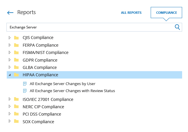 Makes it easy to prove your Exchange Server security controls are in place with hard evidence by providing out-of-the-box reports mapped to specific regulatory compliance standards, including PCI DSS, HIPAA, SOX, GLBA, FISMA/NIST, CJIS, GDPR and more.