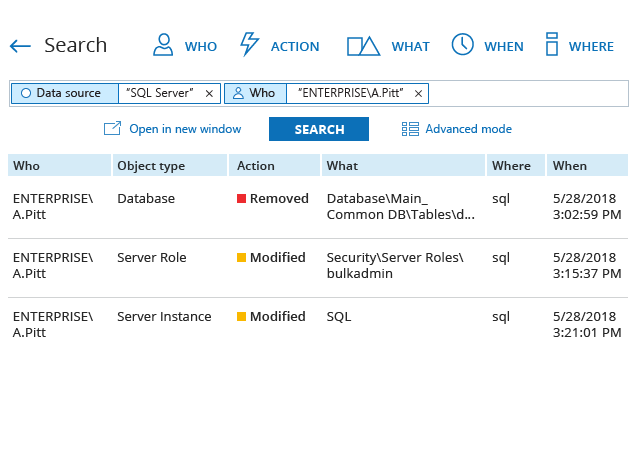 Netwrix Auditor for SQL Server provides actionable intelligence about all critical changes and logon events in your Microsoft SQL Server. Conduct regular SQL Server auditing to mitigate the risk of privilege abuse, prove IT compliance and ensure high availability of your databases.