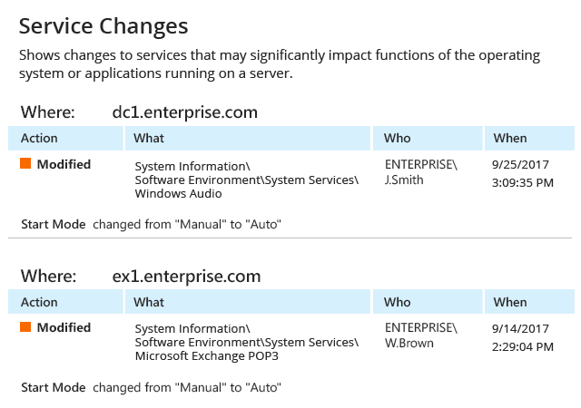Simplifies change monitoring by aggregating information on every modification and providing actionable audit data, including who, what, when and where details and before and after values.